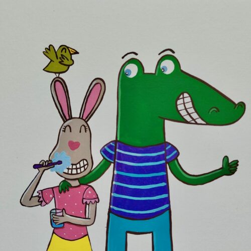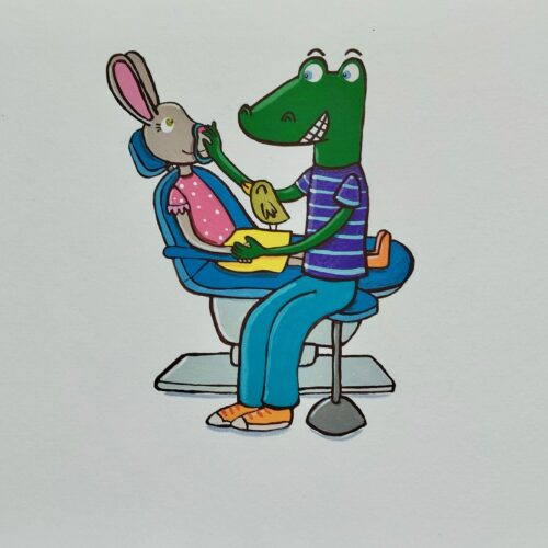 Création du personnage Crocodent, pour le site internet et les fresques murales du cabinet du Dr.Dominici à Nîmes.