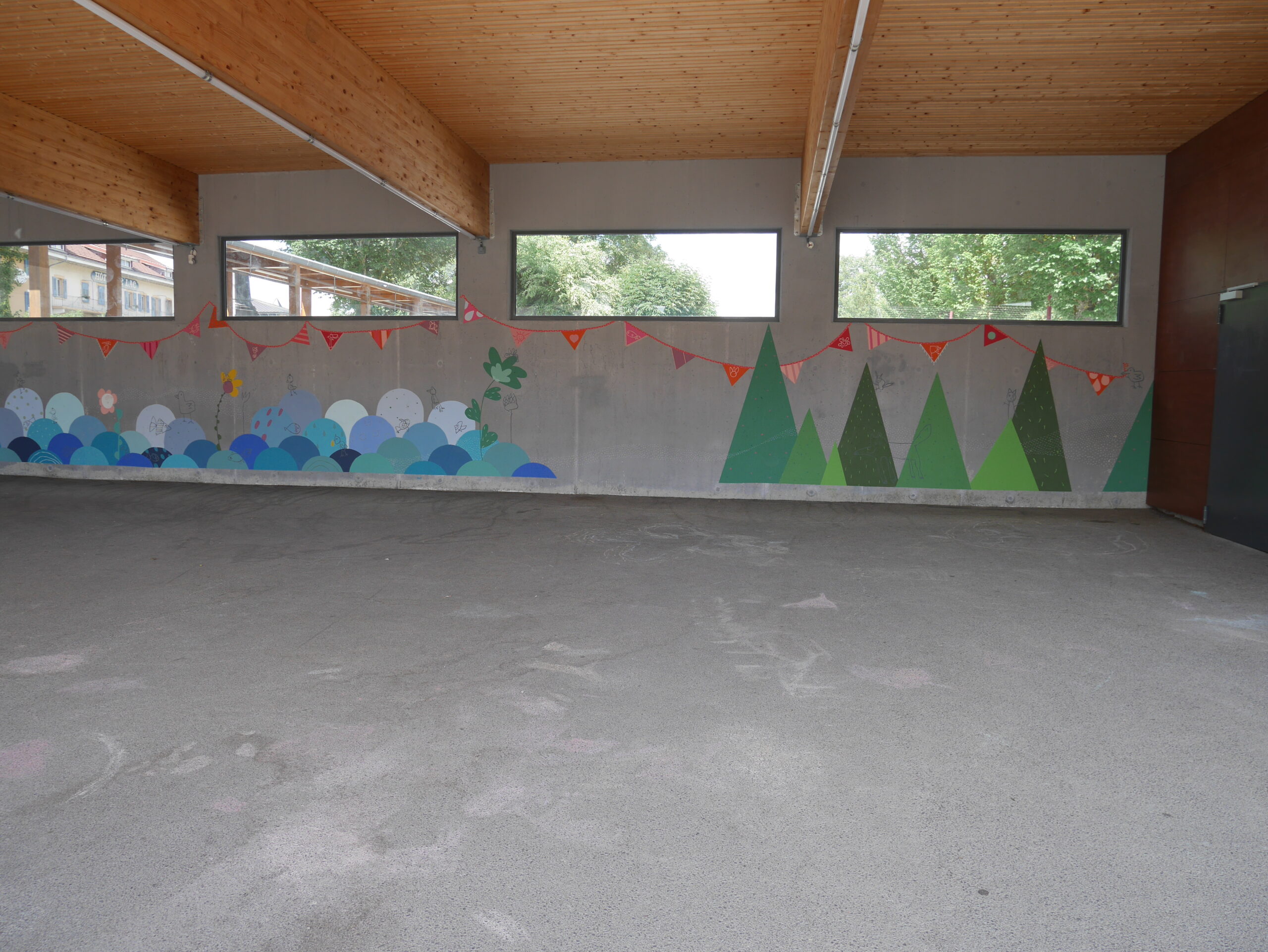 Fresques sous le préau de l’école maternelle de Malbuisson, Juin 2023.sophieZ14/07/2023Actualité, Divers, Ecole, Fresques Fresque sur le thème de la nature.Le lac, la forêt , ainsi que les maisons de Port Titi ont été peintes par tous les élèves de l’école maternelle.Des canards, oiseaux, poissons, renard et même un crabe se sont invités sur ce décor… Jour 1. Peinture en cours, vue d’ensemble. Peinture en cours. Peinture en cours. Peinture en cours. Le lac. Le lac. Peinture en cours. Peinture en cours. Le lac. Poisson. Le lac. Peinture en cours. Les sapins. Les sapins. Les sapins. Les sapins. Les sapins. Les maisons de Port Titi. Les maisons de Port Titi. Les maisons de Port Titi. Les maisons de Port Titi. Vue d’ensemble.